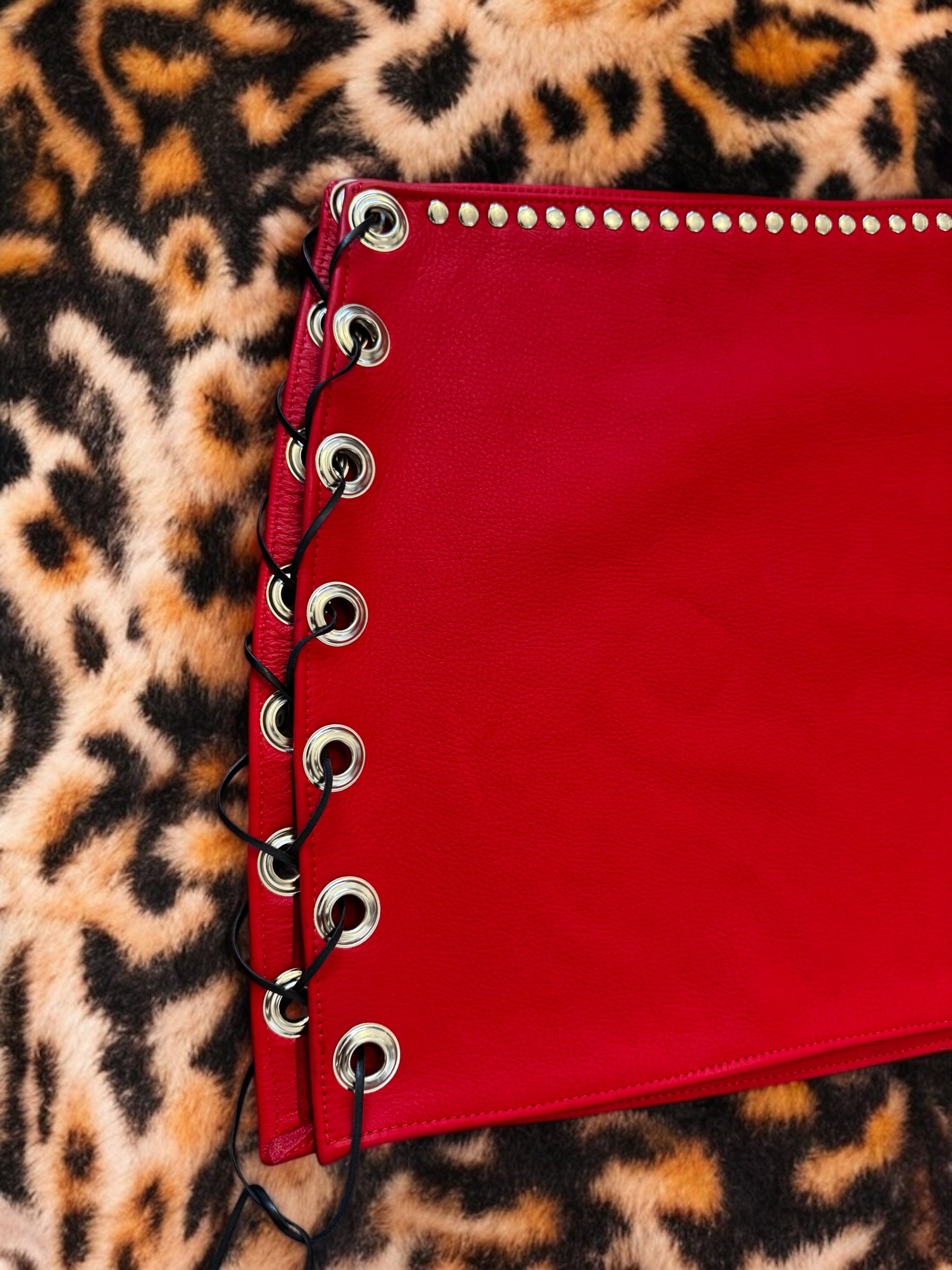 Turn heads and own the night in this bold handmade leather set, crafted from premium, vibrant red leather. The fitted top features front and back lace-up detailing under the bust, allowing you to adjust for the perfect, figure-flattering fit. Paired with a matching mini skirt that hugs your curves and moves with you, this set is equal parts fierce and seductive. Designed with a heavy metal edge and built to last, it’s the ultimate statement look for concerts, photoshoots, or unforgettable nights out.